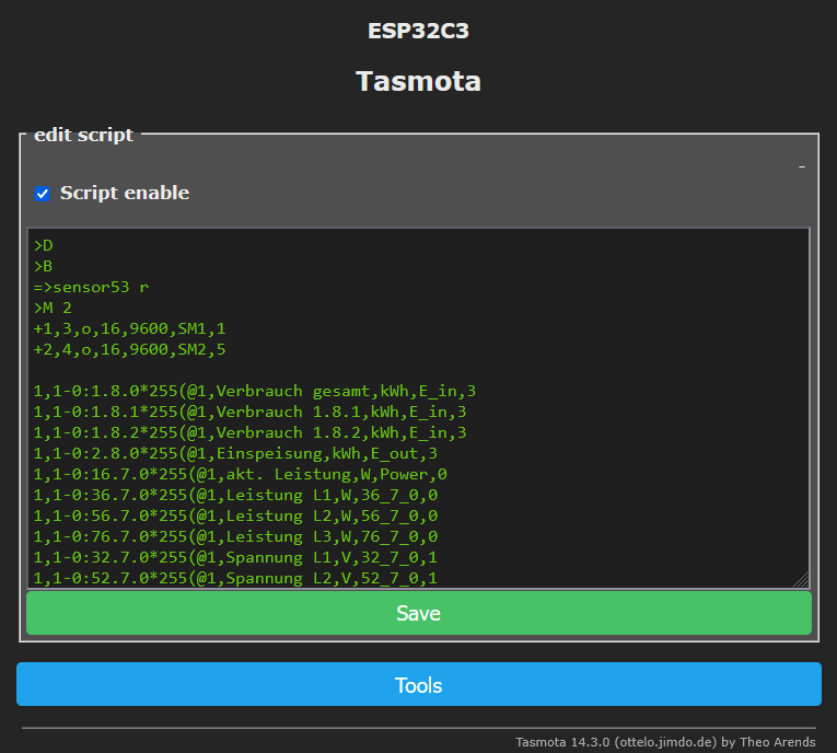 Hier könnt Ihr jetzt das passende Script für Euren Stromzähler eingeben.