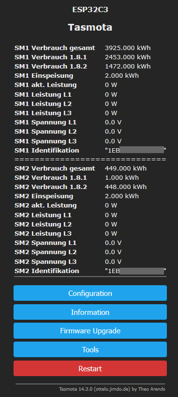Diese Zeilen könnt Ihr vorläufig auch auskommentieren mit einem ; (Semikolon) davor. Dann berücksichtigt des Sensor diese Daten nicht und in der Stromleser App wird wieder alles richtig angezeigt.